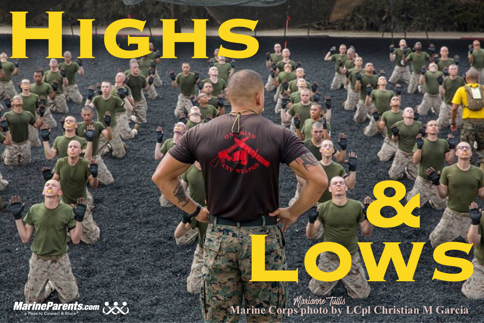 Suggested Text 1: Welcome to the emotional rollercoaster that is Marine Corps boot camp! Each Wednesday we'll ask you to share your "High" for the past week, then share your "Low".